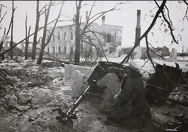 On the Kalinin front, Cholm was a strategic crossroad and also dominated a land-bridge through the marshy terrain nearby. The first major Russian assault on Festung Cholm took place on the 19th of January, and over the succeeding weeks repeated attacks shrank the perimeter. The freezing weather, snipers and lack of supplies made the garrison’s life a misery. To mark Red Army Day, the Soviets launched another major assault using an infantry division with heavy tanks in support. . .Attacker: Russian (33rd Rifle Division)