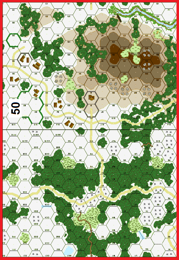 Let me say first: I really like partisan scenarios. So they usually get a good rating from me. This one played out about like I expected, with Stan sending his SS along the mountain and road on board 50. I setup the bulk of my forces on Board 50: with 7 of the 13 buildings there, I felt that this was where I needed to make my stand. My fortified locations were I8 and G10: I wanted I8 to be an early game strongpoint, and I wanted the INF gun in G10, so wanted to prevent the easy advance. I put HIP 337 and LMG in E10 (protecting the approaches to F8 on one side -- the 9th Bldg and G10, my second fortified location) and L6 (for an early game surprise if he ran along the ridge top, especially with the ldr and radio for his OBA: this didn't work--M4 would have been better to get the surprise kill on the OBA observer, but better still would have been D5, as thus game played out, protecting the back door to F8). As the game played out, my partisans quickly wilted under fire and I lost about 4 squads in the first three turns. The I8 stronghold, which had a DC and 527, failed to slow the SS down, and my 527 broke on a 1MC when he tried to place the DC against one of the H39 tanks. But things turned when I killed this tank with the INF gun and then went on a rate tear the next turn (still had my 2 ROF after breaking/killing 2 squads which had moved adjacent). Stan was forced to divert the other tank to deal with the INF gun via bypass sleaze, but I also had moved a 337 into the building to defend against this. I was able to immobilize the tank, and eventually kill it. Stan did kill the crew with a DC and failure to rout, but the 337 passed a 2 MC and Stan still had not taken this location when we had to stop, although it was imminent. We had to end after 4.5 turns due to time constraints. We called this one a draw, as Stan was sitting on