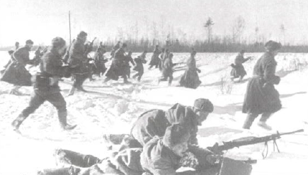 As part of the defense of the Krasnyj Bor crucible, La Segunda, the II Battalion of the 250th Infantry Division deployed between the 176th and the 366th Grenadier Regiments. Its mission was to hold forested hills along the Kornaia River. 5th and 6th Companies set up on the east of the front line and heavy weapons of the 8th Company, machine guns and mortars, were dispatched among the other companies. Frozen ground forced the Spaniards to build parapets with branches and logs shoveled with snow. Around 0600, Russian artillery began to open fire and shells fell on La Segunda for 3 hours. At 0900, regiments of Russian riflemen built up an attack and rushed forward as the artillery barrage lifted.Attacker: Russian (71st Rifle Division)