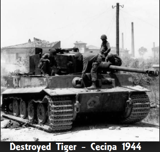 The 24th Infantry Division was attacking to seize the town of Cecina. The 133rd Infantry Regiment began encountering stiff resistance from SS troops near the center of town. Lieutenant Cox, leading 3rd Platoon, B Company, 752nd Tank Battalion was given the mission to support the 133rd Infantry. Intelligence reports indicated that the Germans were preparing to counterattack with Tiger tanks and infantry. Lt. Cox directed his driver to move their Sherman up the road toward suspected German positions. As they neared a cruve in the road, a German soldier appeared, waving to someone out of view. That German soldier was directtling Leutnant Keitel, commander of Tiger 221, into actionAttacker: American (Elements of the 133rd Infantry Regiment, and 3rd Platoon, B Company, 752nd Tank Battalion, 34th Infantry Division)