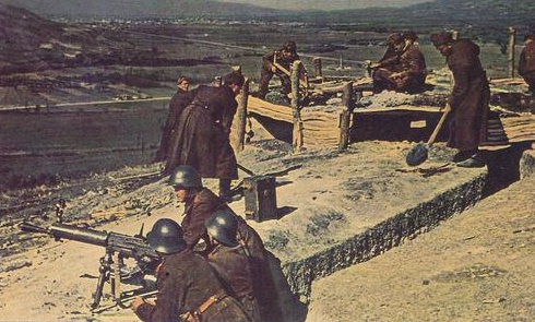Bulgarian soldiers prepare defensive position