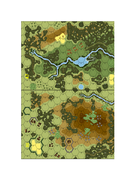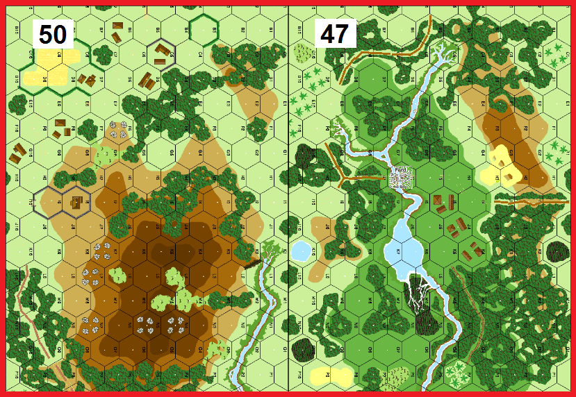 | Misc Rules: | PTO, LJ (Exc: Brush remains Brush). A: may not Recombine until Turn 5 w D: Gun set up on hill hex |