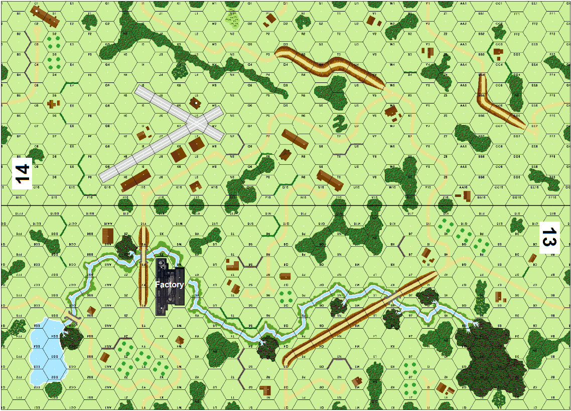 | Misc Rules: | Treat Brush as Woods. Factory bldg. A: use Russian MGs w/o penalties |