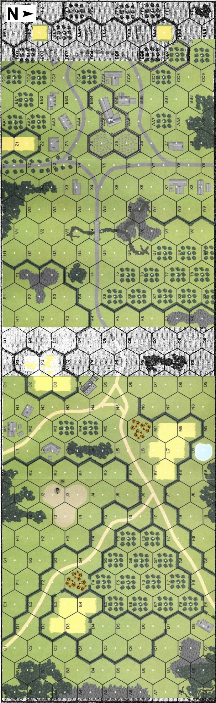 | Misc Rules: | Plowed Ground in April. A: Split OoB by SSR enters on north and east edges. |