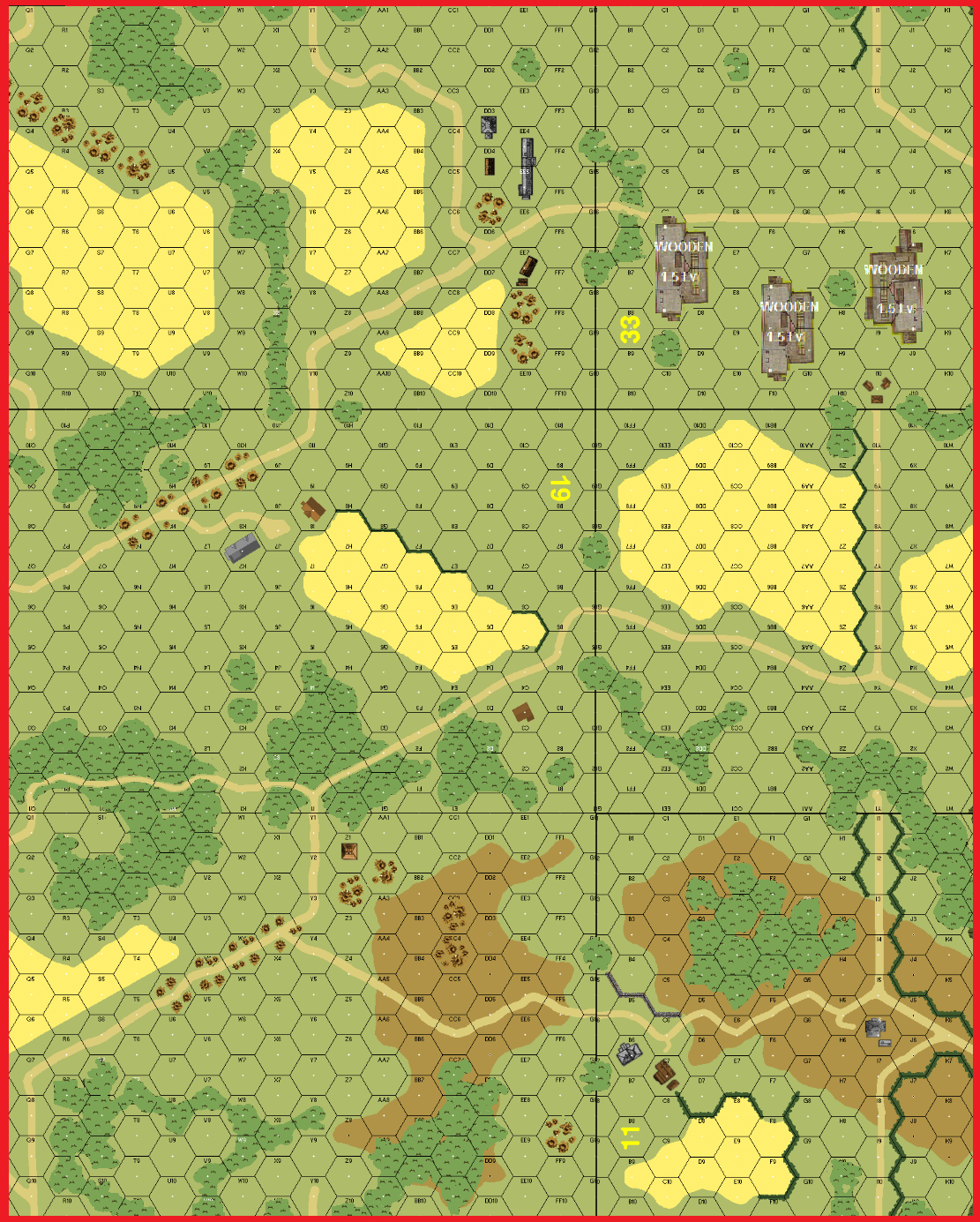 | Misc Rules: | Woods are Brush, Orchards are Shellholes. No rooftops. A: FTV2 w D: FB2 |