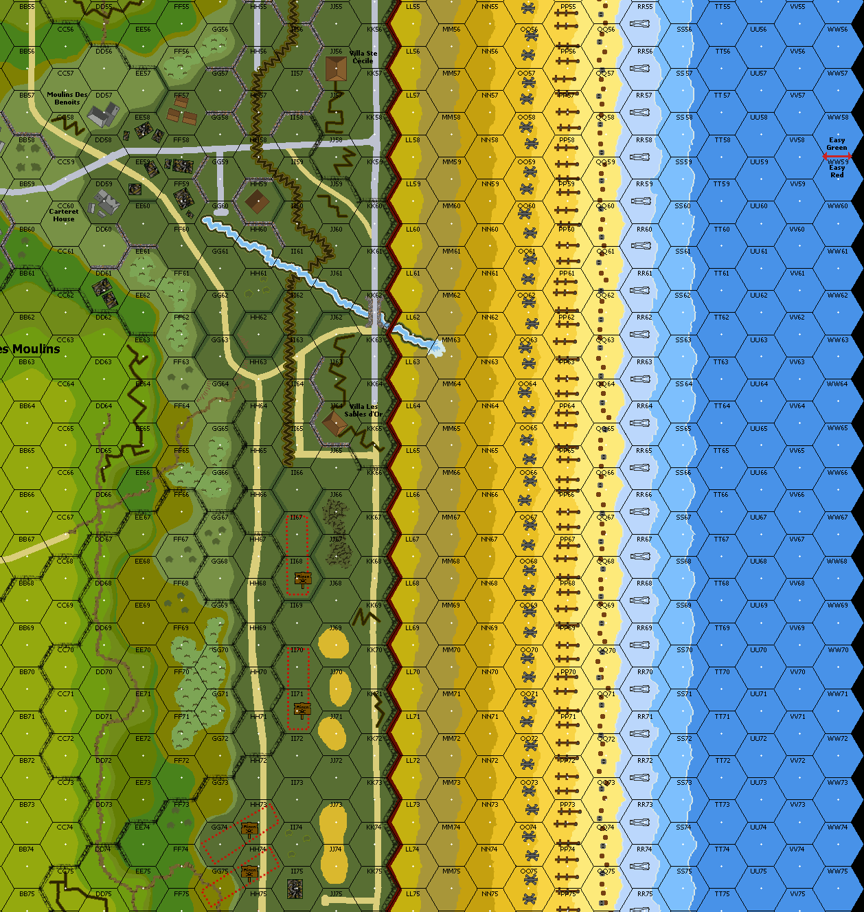 | Germans Setup in WN 66 AND WN 68, mines must setup in hexrows HH and/or JJ | Deduction by checking the ATS scenario card, CH were not forthcoming |