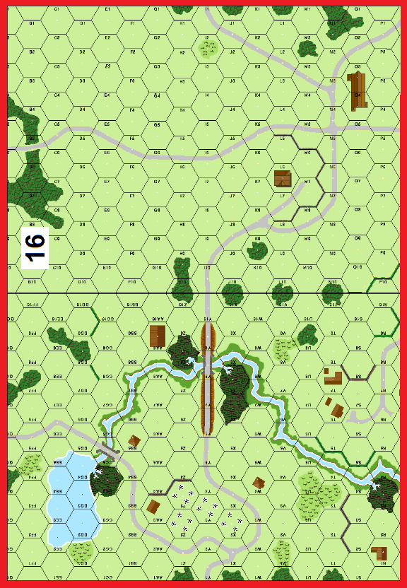 | Misc Rules: | Falling Rain (E3.51), Soft Ground (AFVs 2 MP per hex and bog check). Paved Roads, Bldgs: Wooden |