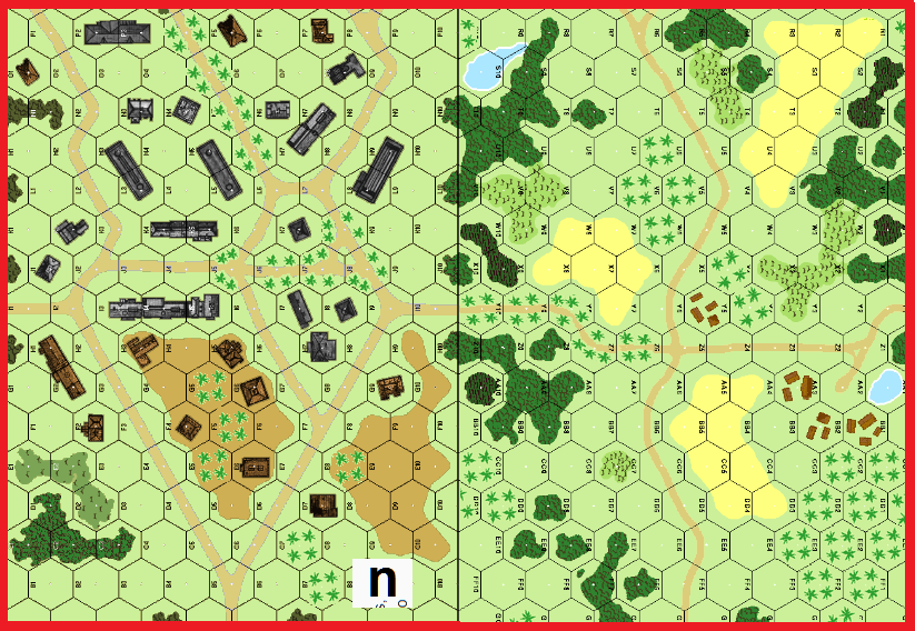 | Misc Rules: | PTO (Exc: roads exist but unpaved). 1/2 MP road rate is NA. w A: Air Support |