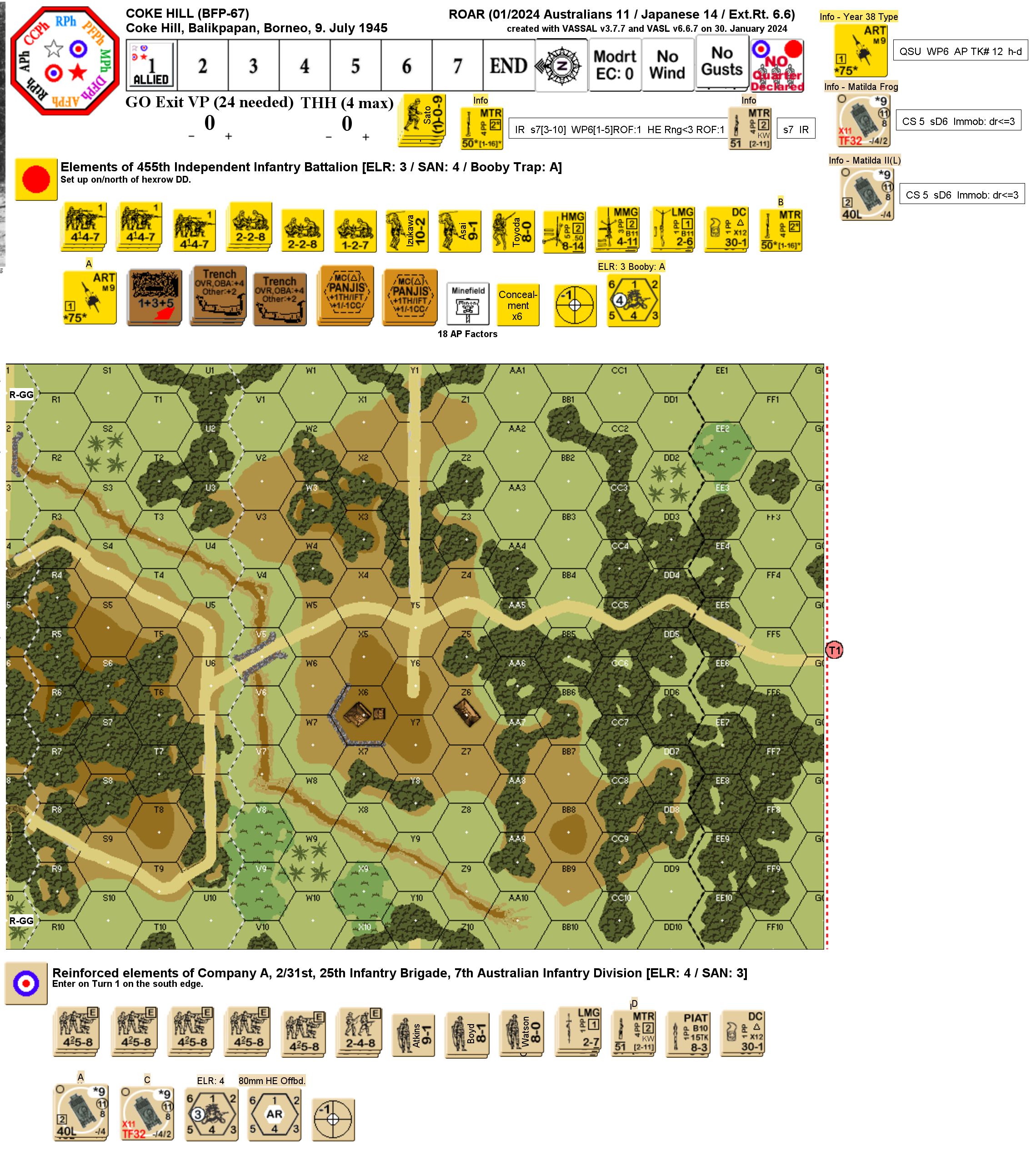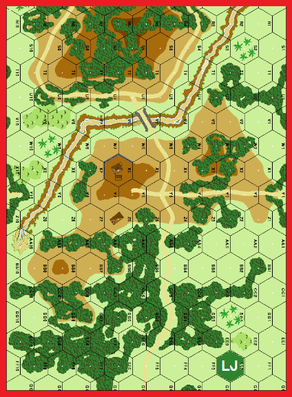 | Misc Rules: | PTO (G.1) Exc: Roads/Bridge exist, LJ hex FF2, Stream: Dry. A: FTV (D3.6), D: BT: Level A (B29.9) |