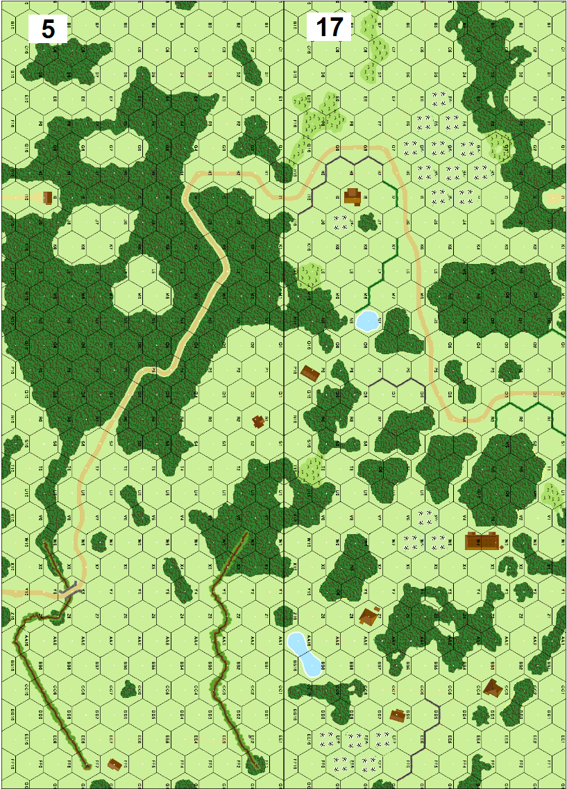 | Misc Rules: | Mist. Grain is Woods. All vehicles Bog Check each non-road hex, with Soft Ground DRM |