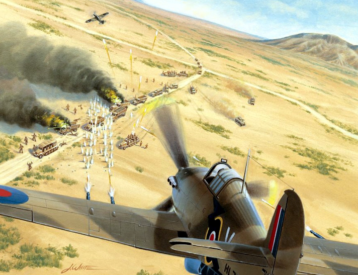 As Rommel’s Panzerarmee moved off on its final offensive shortly after dark on 30 August 1942, it soon wandered into uncharted minefields. As the first minefield explosions erupted, heavy incoming artillery fire began. Machine-guns swept the entire area and German sappers suffered fearful losses clearing a lane. Worse, just as forward movement began anew, the RAF put in an appearance with deadly precision.Attacker: British (Elements of the RAF)