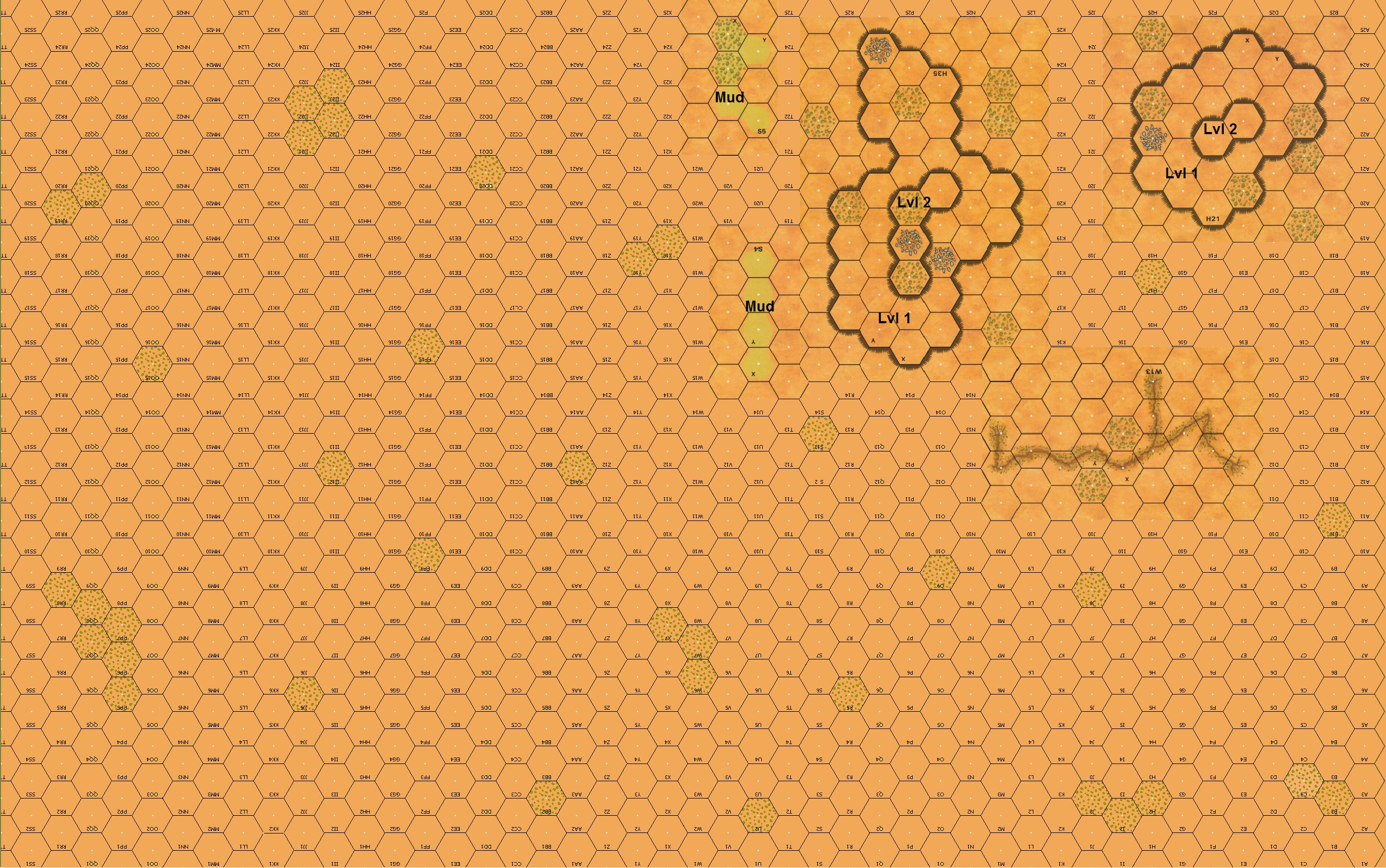 | Misc Rules: | Hillock overlays treats as Hills, Level 1 and 2. Sand overlays are treated as Mud. |
