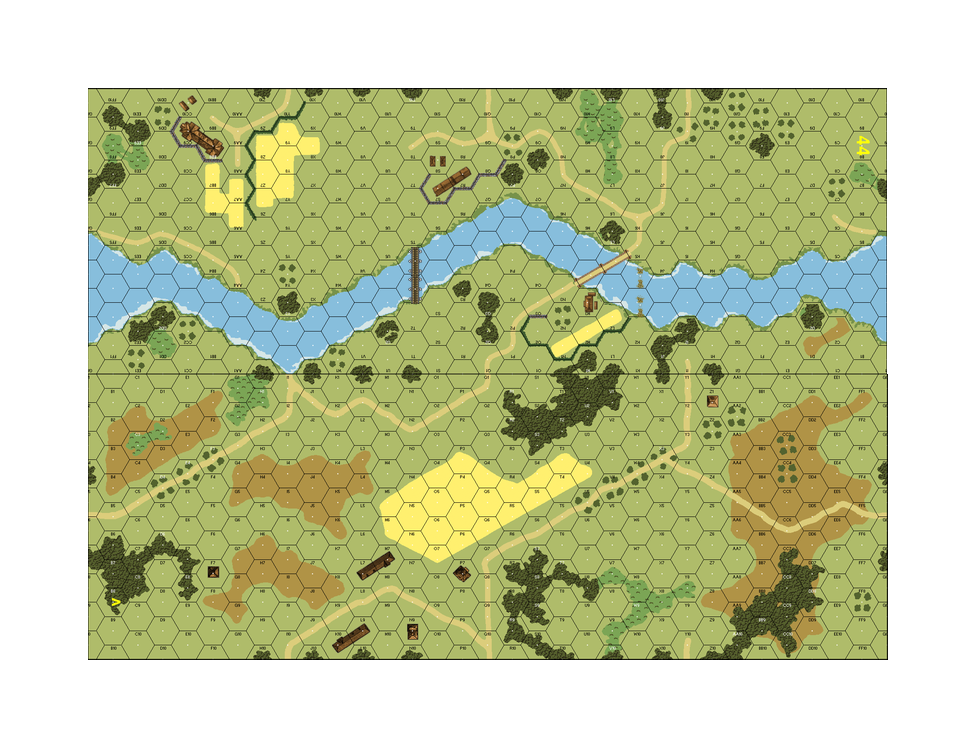 | Misc Rules: | Ford, pontoon and wood bridge. Fully tracked vehicles no bog in Ford. |