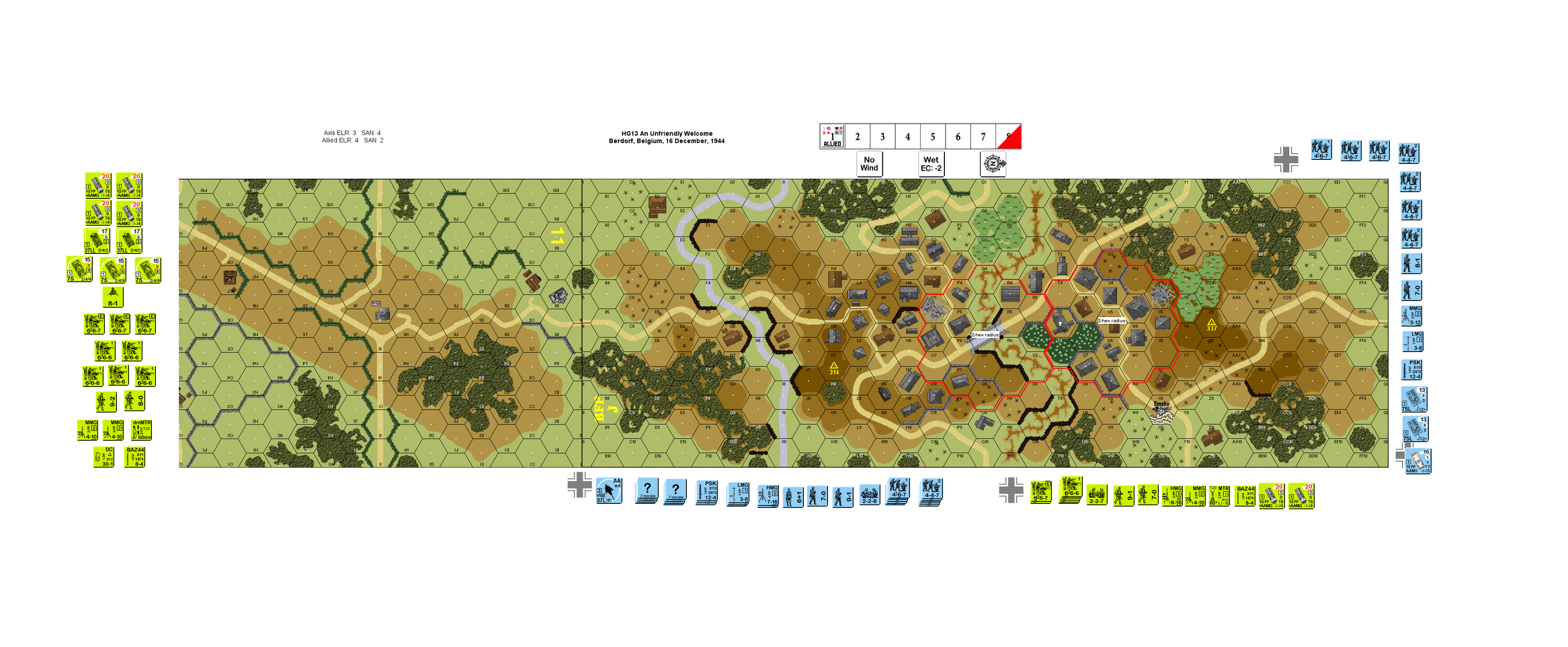| Setup notes overrule A2.3 for German setup for this scenario allowing Germans units to setup on the row A half hexes. | BFP |