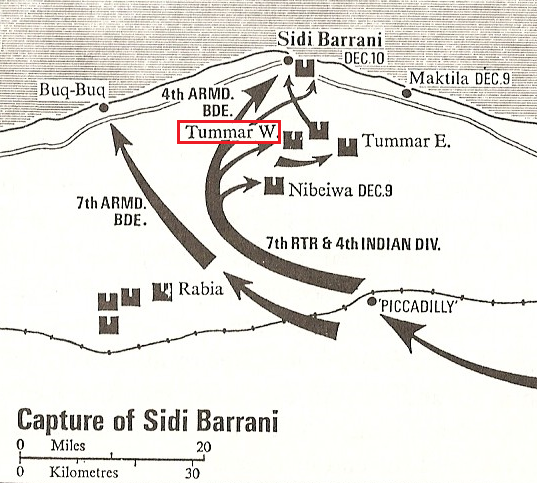 Reworked "Tummar West" CH115. . . While the 11th Indian Brigade was capturing Nibeiwa, 5th Indian Brigade (the 1st Royal Fusiliers, the 3/1st Punjab Regiment, and the 4th Battalion, 6th Rajputana Rifles) and a regiment of the 4th Indian Division's artillery were moving in a wide arc to the west of Nibeiwa, preparing to attack the next objective, Tummar West. The 7th Royal Tank Regiment had not time to gloat over the havoc they had caused at Nibeiwa, they were dispatched to support the 5th Indian Brigade.Attacker: British (1st Royal Fusiliers, 3rd Battalion, 1st Punjab Regiment and 'D' Squadron, 7th Royal Tank Regiment)