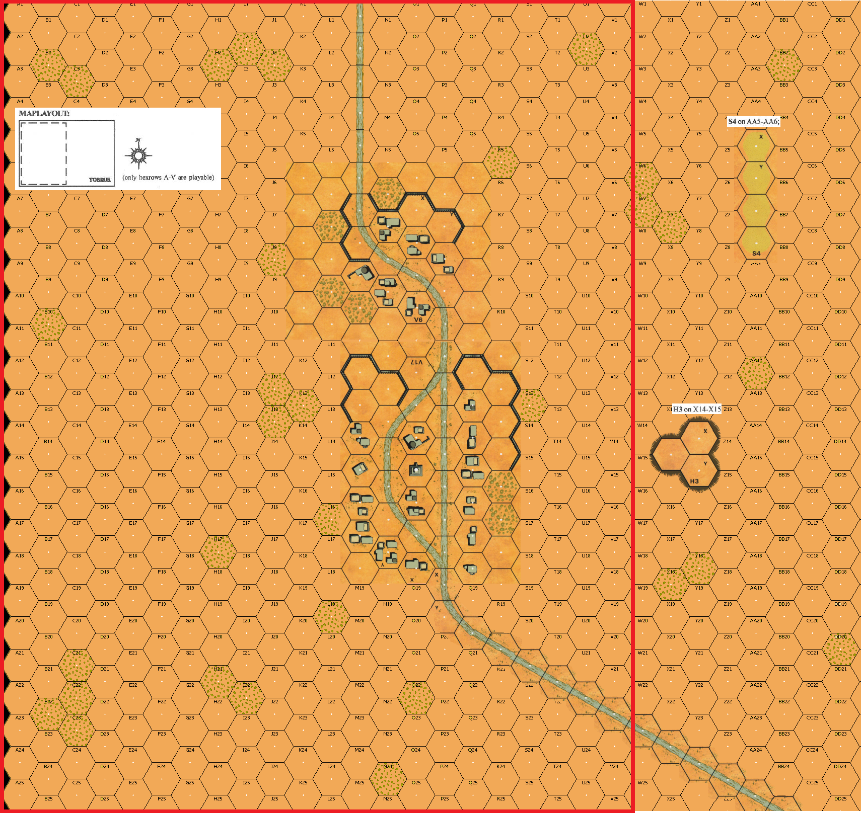 | Misc Rules: | A: OBA must be used as Creeping Barrage w D: Gun crews must set up in Scrub hexes |