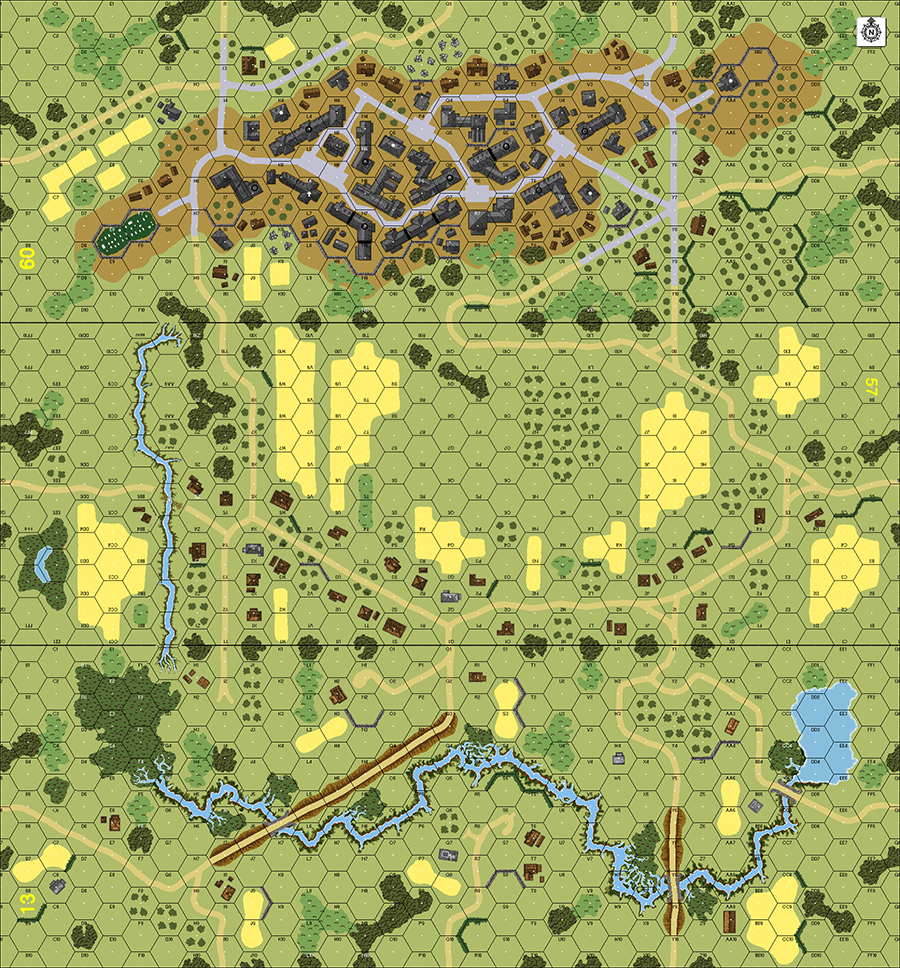 | Misc Rules: | Hills are Level 1 only. Soft ground bog ck in hexes adj marsh/ponds/streams. |