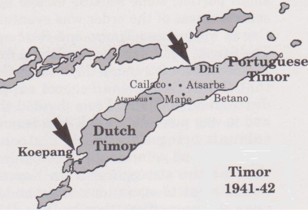 After the fall of Sumatra, another combined sea-air assault was launched against the post of Koepang, located on the western end of the Dutch portion of Timor Island by the Yokosuka SNLF. Here 307 paratroopers descended on the Penful Airfield just south of Koepang. Allied resistance, a combined Australian-Dutch force known as Sparrow Force, was strong enough to prevent the Japanese from capturing the airfield in another easy conquest.Attacker: Japanese (Yokusuka SNLF, IJN)