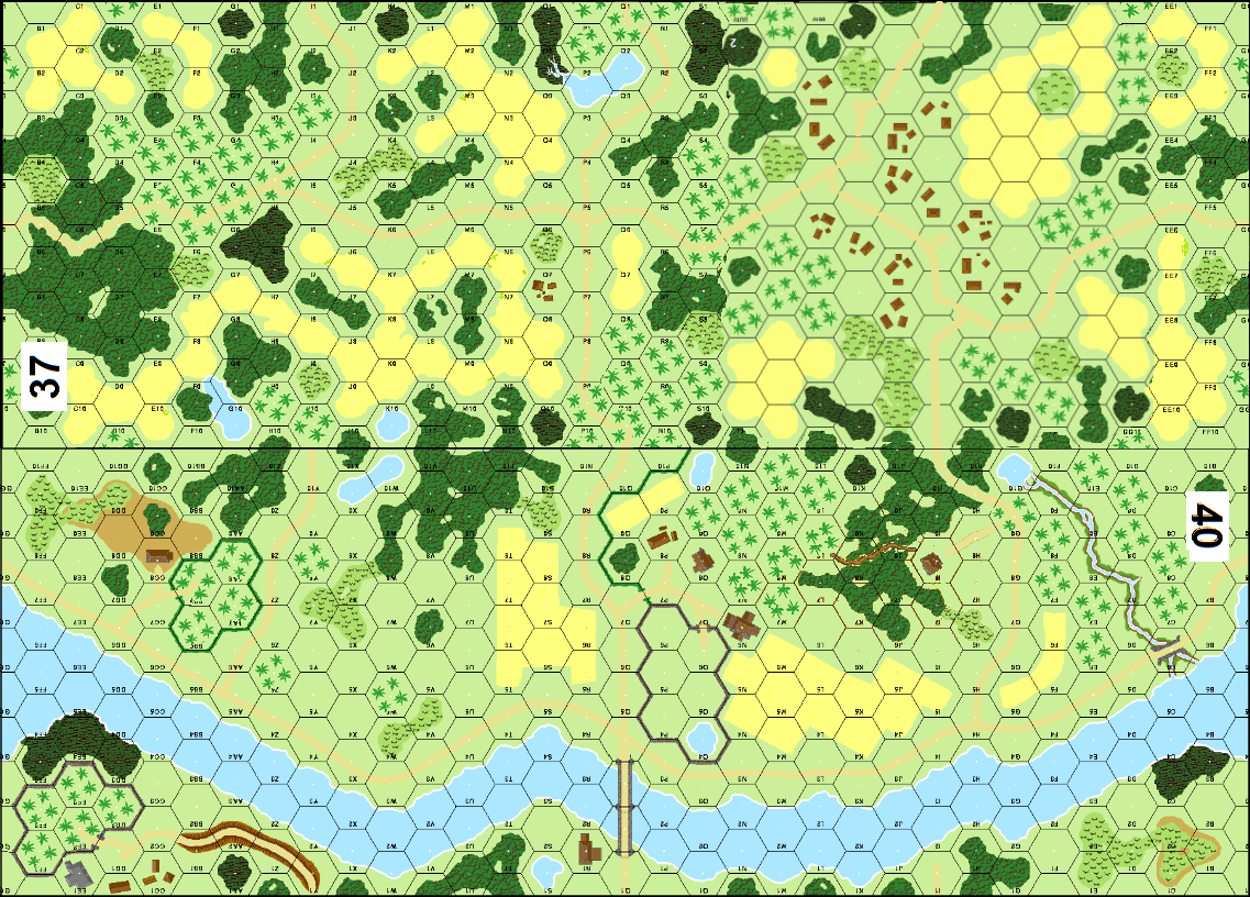 | Misc Rules: | PTO (G.1), LJ (G2.1) Exc: Roads exist. Hill Bd 40: NA, River: Shallow, slow moving. |