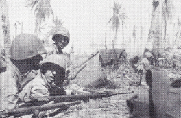 Eniwetok could not be secured on the first day of invasion. The Army units involved were just too cautious because of doctrine. The Marines were brought in to help capture the island. After a hellish night of shelling, friendly fire casualties, and Japanese infiltrations, the second day saw the Marines push the Japanese back into the eye of the hook-shaped islet.Attacker: American (USMC) (Elements Marine Reserve Battalion)