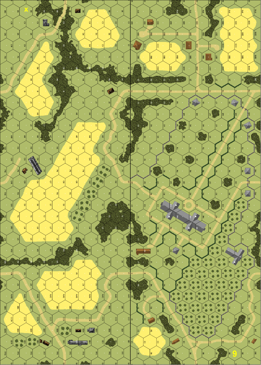 | The North is not to the top of the sheet, but to its left, i.e. the US enter the board from the wide edge of board X. | LFT website |