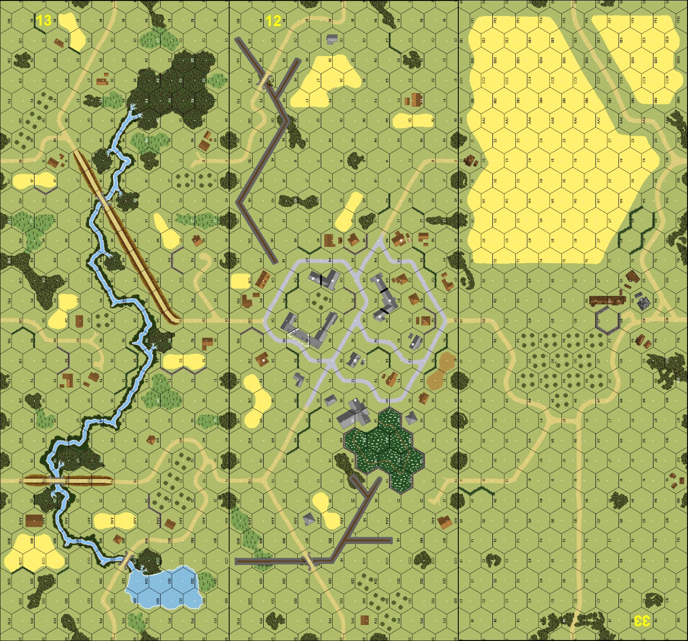 | Misc Rules: | Bd 12 gullies are A-T ditches with bridges. A: AE / Sappers w D: Fanatic Strongpoint (VotG SSR CG11 |