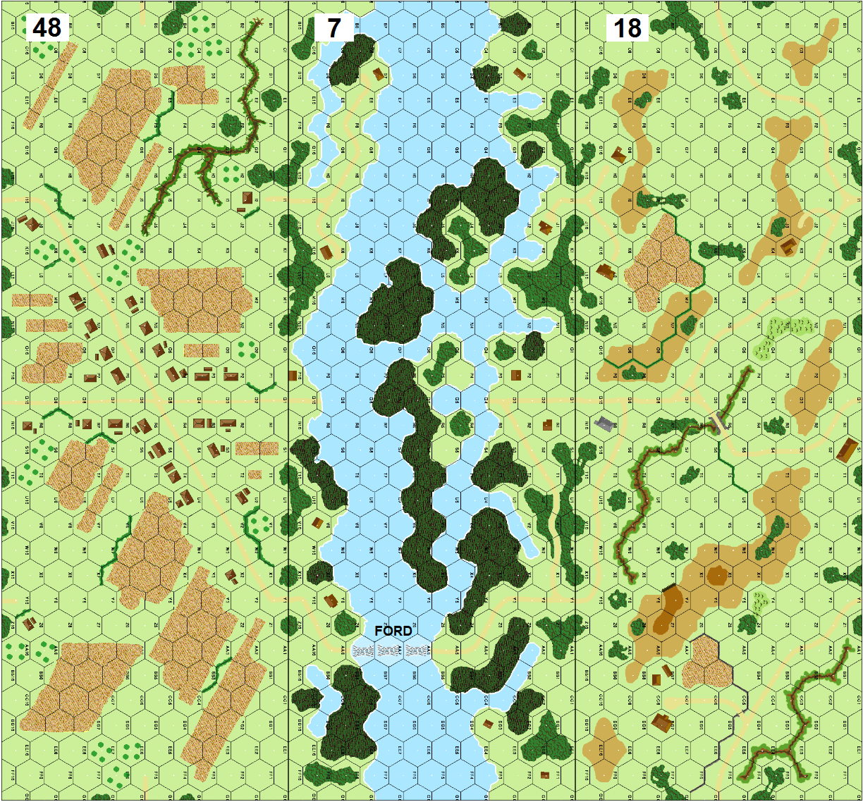 | Misc Rules: | Mud (D8.23). River: Fordable, Ford is 7AA6-AA8. |