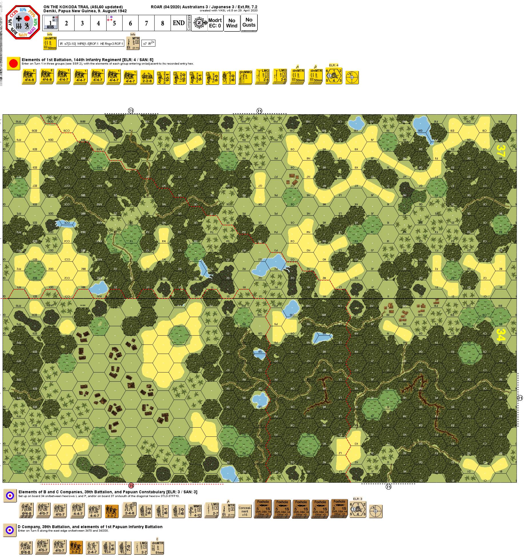 | Misc Rules: | PTO Terrain (G.1), DJ (G2.2), D: Papuan 3-3-7 Partisans |