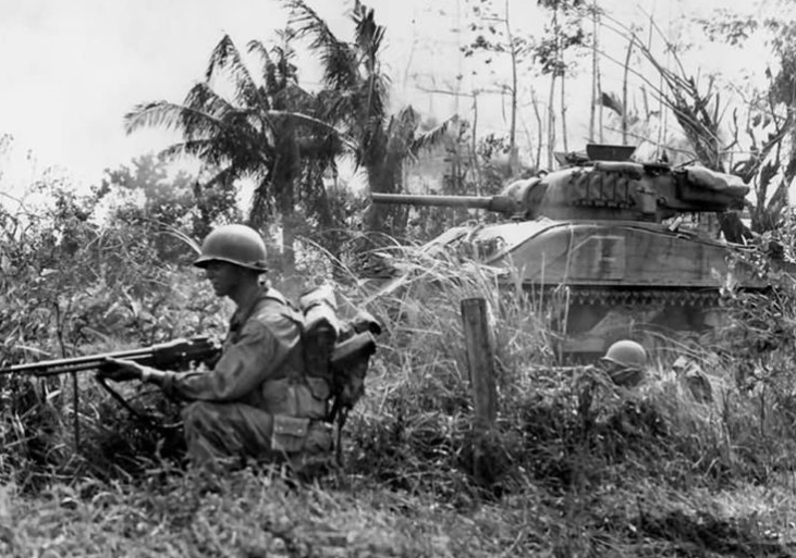 The American 3rd Battalion, 1st Infantry Regiment, 6th Infantry Division and supporting Sherman tanks attack the Japanese 2nd Mobile Infantry Regiment defending a village. Hidden Type 97B Chi-Ha tanks will make it tough on the G.I.s . . .Attacker: American (3rd Battalion, 1st Infantry Regiment, 6th Infantry Division)