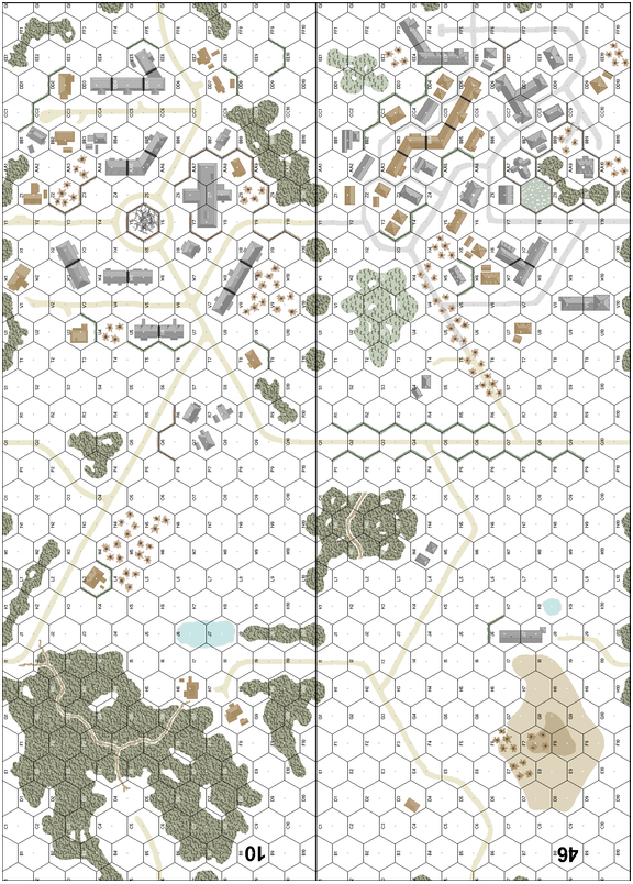 With the Stalingrad offensive nearing its conclusion, Army Group Center was suffering a siege of its own at the rail center of Velikeye Luki. The Germans fortified their bridgehead along the Lovat River with the intent of resuming offensive operations after another harsh Russian winter. However General Purkayev of the Third Shock Army had offensive plans of his own and would need the bridgehead and transportation facilities at Velikeye Luki and encircled the city during the middle of November. Hitler’s standfast order prevented any withdrawals, but several attempts were made to break the encirclement. Most of the relief attempts were thrown back into the frigid wasteland, but on the 10th of January, a small column of light infantry and a few tank destroyers made a daring daylight dash through the Soviet lines to join the defenders. Within a week, the few remaining defenders would attempt to break out from Velikeye Luki. Only 150 men would make it.. . . .A German infantry company supported by a 88L AA and a 75* INF defend boards 10 and 46 in the face of a Russian attack consisting of thirteen squads and a platoon of KV tanks. A German counterattack of five squads a StuG IIIB and a Marder II makes this a very exciting scenario with lots of options and re-playability.Attacker: Russian (Elements 257th Rifle Division & 92nd Tank Brigade)