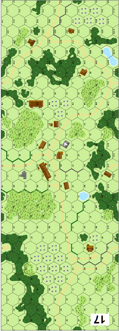 | Misc Rules: | Grain is Brush, Orchards out of season; Bldg S6 has a Steeple location |