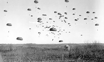 “Operation Varsity”, the airborne phase of the Allies’ northern Rhine crossing, was to be the last airborne assault of the war. The 17th Airborne Division’s first regiment to drop had little problem from ground fire, arriving so close behind the Allied preparatory bombardment phase. But the second regiment was not so fortunate. With the Germans no longer deterred by the bombing, the paratroopers received heavy small-arms and anti-aircraft fire as they fell to the ground.Attacker: American (513th Parachute Infantry Regiment, 17th Airborne Division)