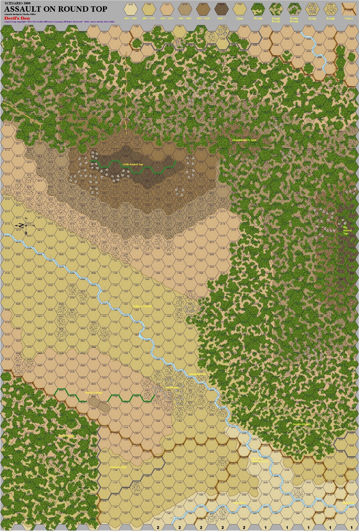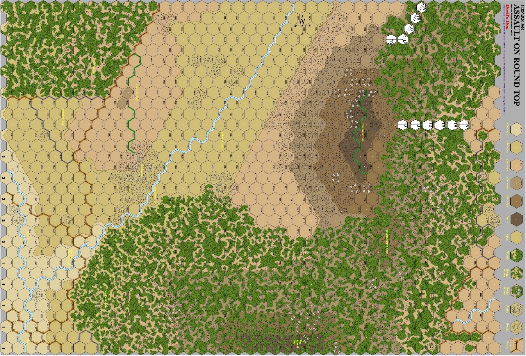 Fictitious battle incorporating geography from Gettysburg, PA. SEE PDF BELOW in User Files FOR SCENARIO INFORMATION. A Vassal version of the Devil's Den map can be found in the Resources section on GameSquad Forum.Attacker: Russian (112794 Rifle Regiment)