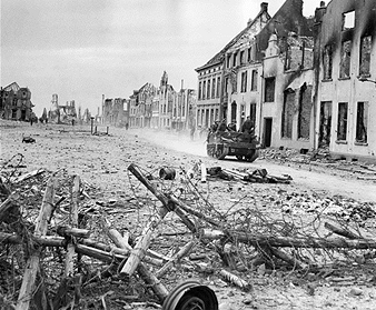 The slow progress being made by the 1st Gordons in clearing Rees was concerning to 30 Corps H.Q., and as a result the 153rd Brigade commander ordered the 5th Black Watch to assist by clearing the portion of Rees north of the station road. The 5th Black Watch commander, Colonel Bradford, requested a delay to allow his men some rest before tackling a difficult night attack, as they had been in action for over 24 hours, but this request was denied. As a result the 5th Black Watch kicked off their attack during the night of the 24th, and in spite of “bitter fighting, street by street, house by house”, by 0020 hours had pushed as far as the station area. By 0140 hours the tired men of the 5th Black Watch found themselves held up by a tough German resistance in the area of the Rail Station and Post Office. First light at 0534 hours saw the attack by C Company of 5th Black Watch, supported by Sherman tanks and Wasps, making little progress against a determined enemy, who had turned the Rail Station into a strongpoint. The Germans fiercely defended the area around the Rail Station and Post Office with fire from machineguns, snipers and hand-held anti-tank weapons, firing on the British from the upper floors of the buildings.Attacker: British (51st Highland Division, 5th Black Watch, Staffordshire Yeomanry)
