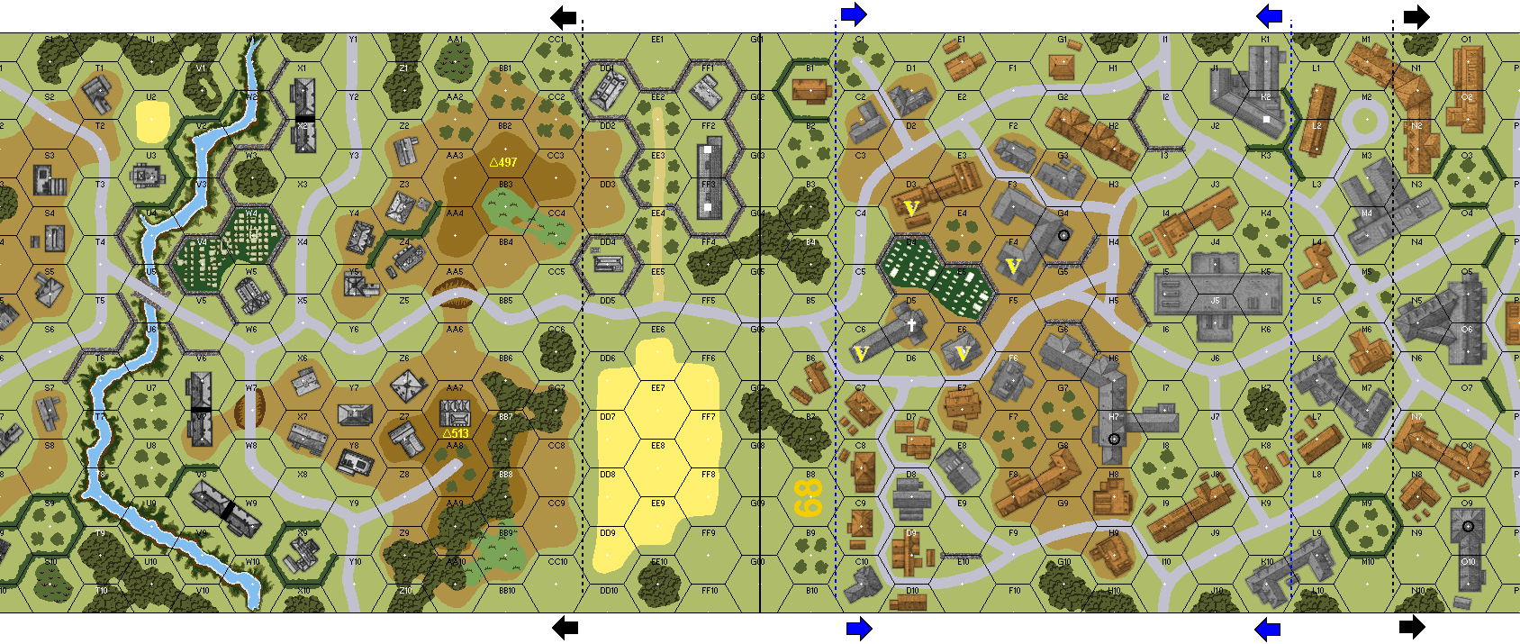 VASL Setup below under User Files. . . . .The German 72nd Infantry Division with the attached 1st SS Infantry Regiment 9 (mot.) "Leibstandarte"was attacking to force the French back across the Marne River. The 41st Infantry Division had arrived to reinforce the French and was occupying strong positions around a chateau in Gandelu. These additional French forces arrived just before the German 124th Infantry Regiment launched its attack at 1100. Seeing the initial German attack was foundering, Hauptsturmfuhrer Mohnke ordered his SS battalion into action to reinforce the attack. The machine guns of Kompanie 8 along with some 150mm infantry guns and mortars supported Baum's Kompanie 7 feint attack from the northwest, while Kremer's Kompanie 5 formed a schwerpunkt from the east.Attacker: German (SS) (Elements of Kompanien 5 and 7, Bataillon 2, SS Infanterie Regiment (Mot.) 1, "Leibstandarte", Infanterie Division 72)