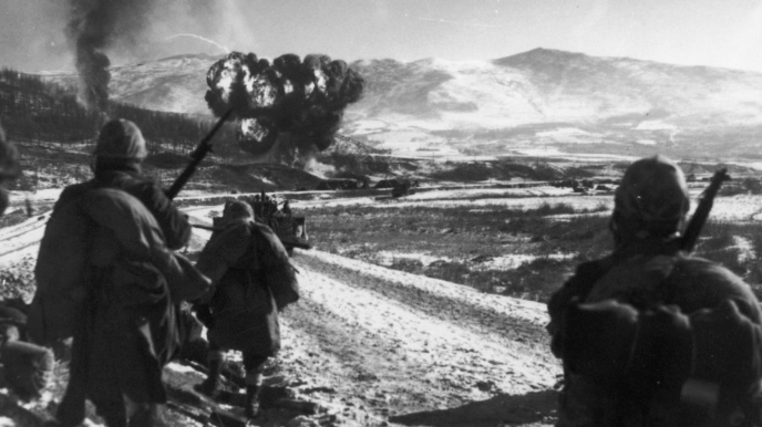 During the nights of 27 and 28 November 1950, the separated elements of the 31st Regimental Combat Team were surrounded and nearly destroyed by elements of the 80th and 81st CVPA Divisions. On 29 November, the regimental units were consolidated on the south side of the P’ungnyuri River Inlet on the east side of the Chosin Reservoir and reorganized as Task Force Faith. Following four nights of continuous attacks, and warned of dire information from reconnaissance and support aircraft, Faith received permission to organize a breakout south toward Hagaru-ni. The key component of the breakout was a convoy carrying over 600 wounded soldiers. As the convoy formed up, sporadic mortar fire landed in the assembly area and, as the lead units exited the perimeter, Communist Chinese infantry attacked, threatening to halt the breakout five minutes after it had started.Attacker: American (A, B and HQ Companies, 1st Battalion, 32nd Infantry Regiment, 31st Regimental Combat Team, Task Force Faith)