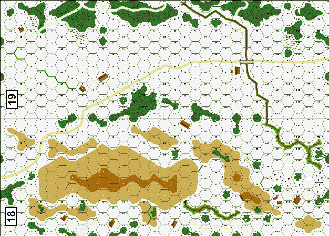 | Misc Rules: | KW (W.3), GS (E3.72), EW (E3.74). One plowed Rd. AS (A19.131) both sides. A: Air (E7) with Napalm |
