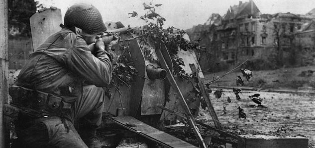 The Big Red One had been working its way into Aachen for a month. Two battalions of the 26th Infantry Regiment entered the city proper on 13 October and began grinding their way through the heart of the city. Colonel Wilck, commander of Volksgrenadier Division 246, had been put in charge of Aachen’s defense and established his command post in the Hotel Quallenhof outside Farwick Park. In response to his frantic, repeated calls for help, reinforcements in the form of SS-Bataillon Rink arrived at the hotel on 15 October, where they were quickly engaged along with Wilck’s Grenadier-Regiment 404 and some assault guns in an effort to break out against the encircling Americans. Although the counterattack pushed the Americans back, it failed to break through, whereupon Colonel Wilck and his staff left the park, the hotel, and the nearby Kurhaus to the combat troops and set up a new command post in an air raid bunker not far away.