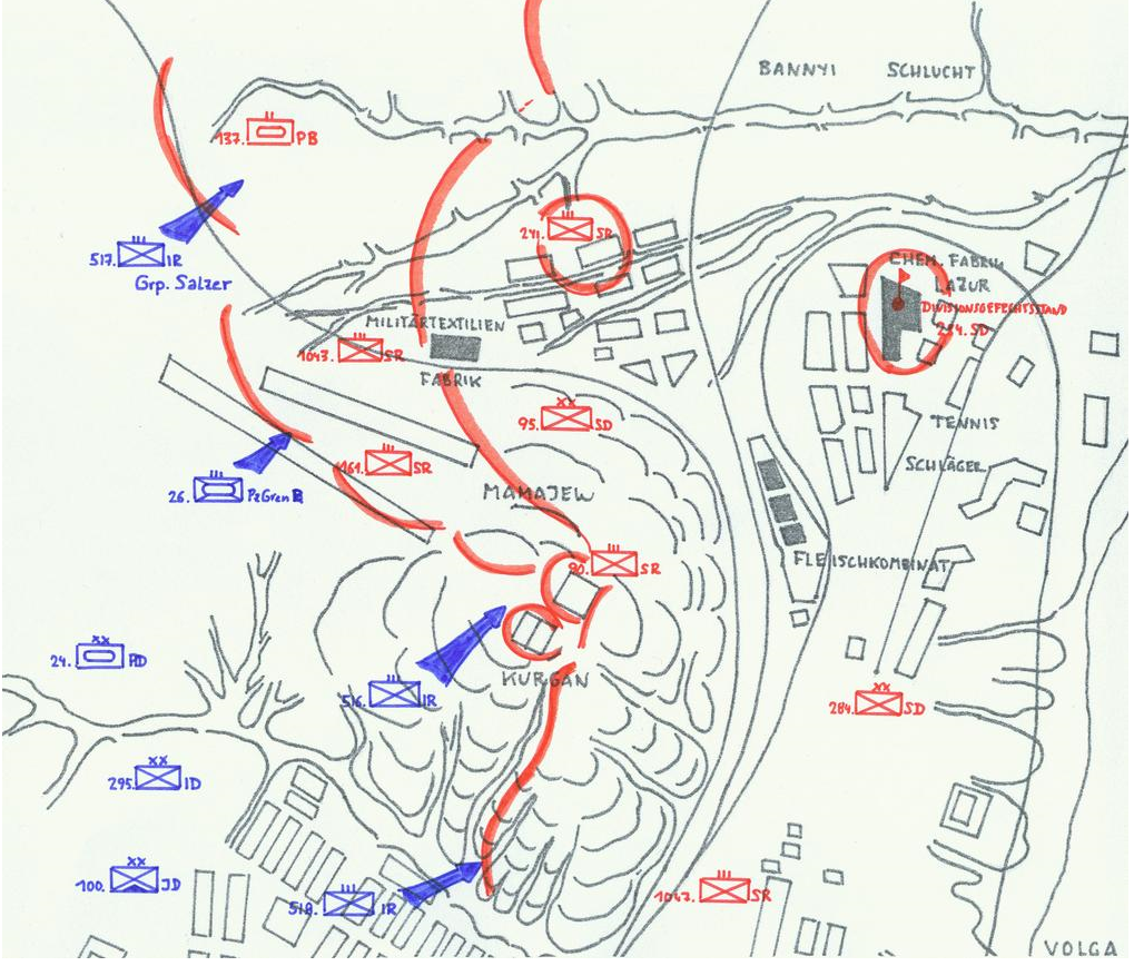 The Mamayev Kurgan, a massive Tartar burial mound, was the centerpiece of Stalingrad. During the battle, the lines ebbed and flowed from the mound like an ocean tide. For the Germans, the mound provided a sight over the expanse of the Volga—a hollow victory for the Fuhrer’s ambitions. For the Soviets, it was a symbol not unlike the Reichstag—a place to raise a flag. Strewn with rubble, dotted with shell holes and riddled with trenches, Mamayev was the tomb for untold numbers of soldiers on both sides.Attacker: Russian (Elements of 62nd Army)