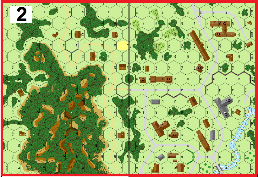 | Misc Rules: | All Hill hexes are Wooded; stream is Flooded. D: No PF capability |