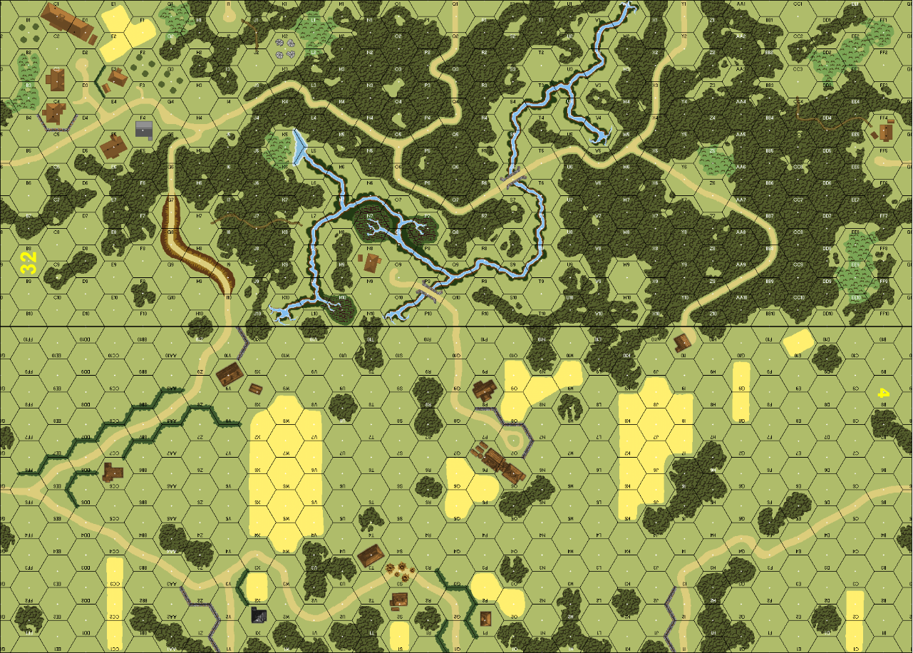 | Misc Rules: | Board 32 undergoes Bombardment (C1.8). Unit in Marsh gets -2 DRM to Bombardment attack |