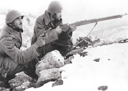 Ill-conceived and ill-prepared, the Italian invasion of Greece quickly turned into a stalemate for the Italians. The initial advance was stopped and the Greeks started counterattacking on the 7th, against Italian soldiers ill-equipped for the weather and mountainous conditions. In Limni, near the Albanian-Greek border, a pocket of Italian resistance was still holding out on the 19th, with Italian soldiers jailing – for some obscure reason – the village schoolgirls.Attacker: Greek (2/39th Evzone Regiment and Villagers of Limni)