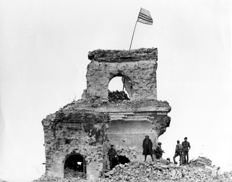 Thompson moved quickly to stabilize the front line and get his Marines moving forward. He withdrew the crippled company and replaced it with the one in reserve. With the help of two M48 tanks, the two Marine companies at the front advanced about three hundred meters before they were halted by heavy enemy fire coming from an archway tower at the Dong Ba Gate. The North Vietnamese had dug fighting positions in the massive stone portal that were impervious to anything less than a direct hit by artillery or tank fire. Major Thompson called off the attack until he could coordinate heavier supporting fire. On the morning of 14 February, an array of 155mm and 8-inch howitzers and 5- and 8-inch naval guns pounded the Dong Ba Gate. Despite the tremendous weight of ordnance that fell on the tower, the North Vietnamese refused to abandon it.Attacker: Allied (American (USMC) / ARVN) (1st Battalion, 5th Marines amd ARVN Marine Battle Group A)