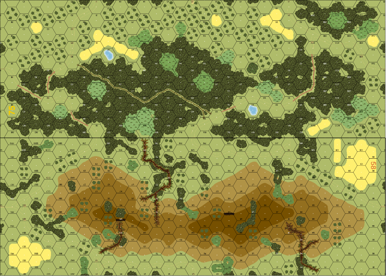 | Misc Rules: | PTO, LJ [EXC: All Interior Jungle Hexes are DJ, all Brush on Bd 58 remains Brush]. Night turns 1-2 |