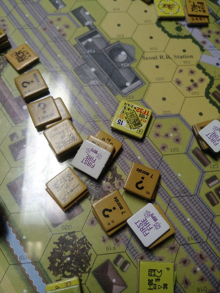 From the hilly terrain overlooking the railyards, LtCol Hawkins' 1st Battalion, 1st Marines could clearly make out several KPA roadblocks not far from the main railway station as well as others up the boulevard that lead towards Nanmaedmun (Great South Gate), the fourteenth century gateway into the once walled city of Seoul. To the east of the station was a park promontory, at the base of Nam-san, up which ran 1,000 steps to an ancient Shinto Temple, whose heights were being claimed by elements of the US Army's 32nd Regiment. For Hawkins, the objective for the day was to have Charlie Company on the left, under Captain Wray, seize the railroad station and clear out the main buildings of the railyard, while Captain Barrow's Alpha Company, on the right, would look to secure the park promontory and the nearby buildings. The attack was prepped by artillery, air support and mortar fire after which the companies descended the hillside in columns of platoons.Attacker: American (USMC) (A and C Companies, 1st Battalion, 1st Marines, B Company, H&S Company, 1st Marine Tank Battalion, 1st Marine Division with VMF-212.)