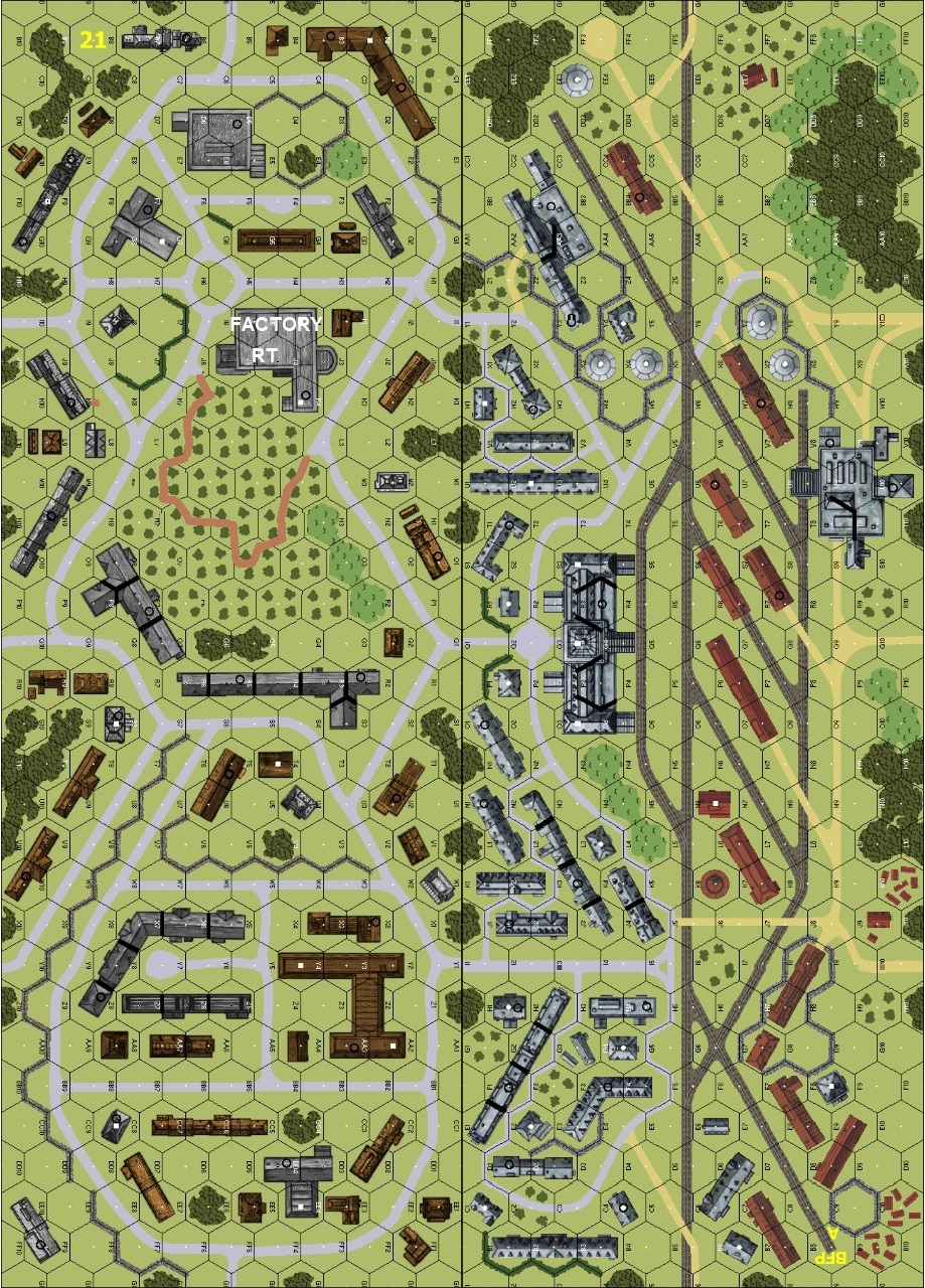 | Misc Rules: | Graveyard hexes are Orchards. Factory w RT. D: German T-34s are Dug-In |