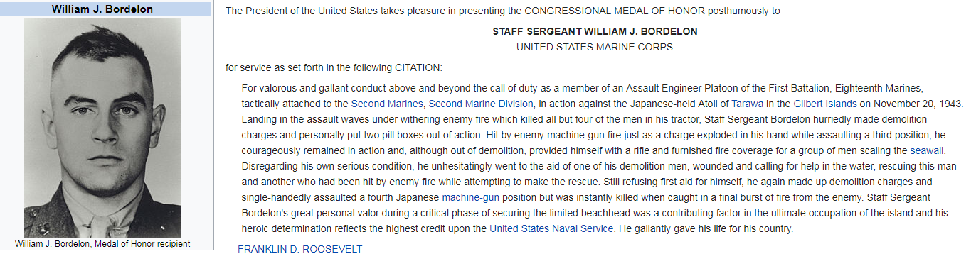 On the morning of D-Day on Tarawa, Beach Red 2 was to be a killing ground for both sides. Landing Team 2, 2nd Battalion, 2nd Marines paid a stiff price to get ashore. This was especially so for their attached engineers. These Marines in particular were a breed apart: expert infantrymen, imbued with the skill and nerve to be demolitions experts, flamethrower operators and obstacle breaching engineers. When Japanese shellfire disabled his LVT at H-Hour, killing most of his platoon, Staff Sergeant William Bordelon led a handful of survivors toward the shelter of the seawall.Attacker: American (USMC) (2nd Battalion, 2nd Marines)