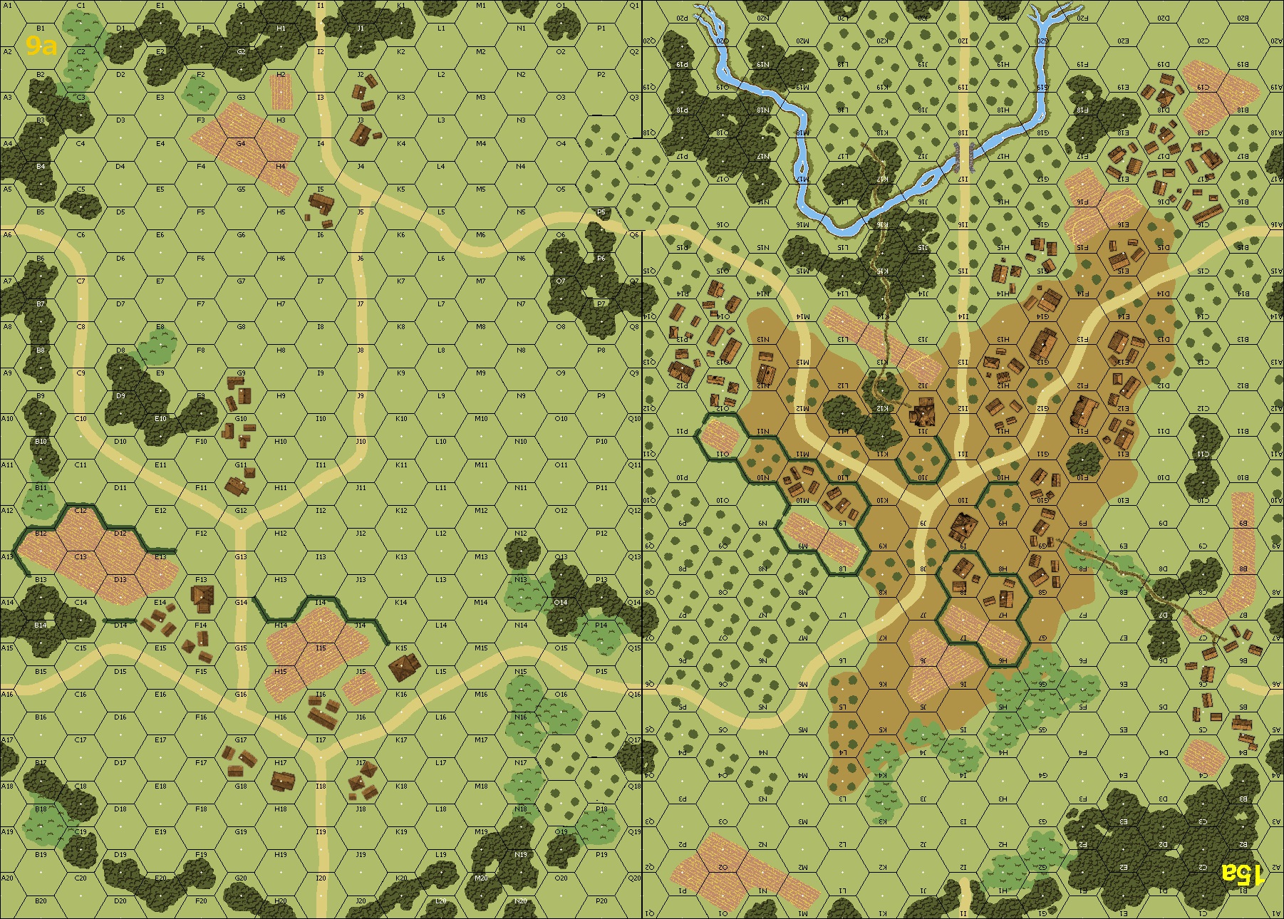 The village on and around the hill consists of one hex wooden buildings with the exception of the victory locations which are stone. Part of the Russian northern flank is protected by a Stream turned into a Water Obstacle by SSR. The Russians receive no less than 8 Foxholes to improve their position.