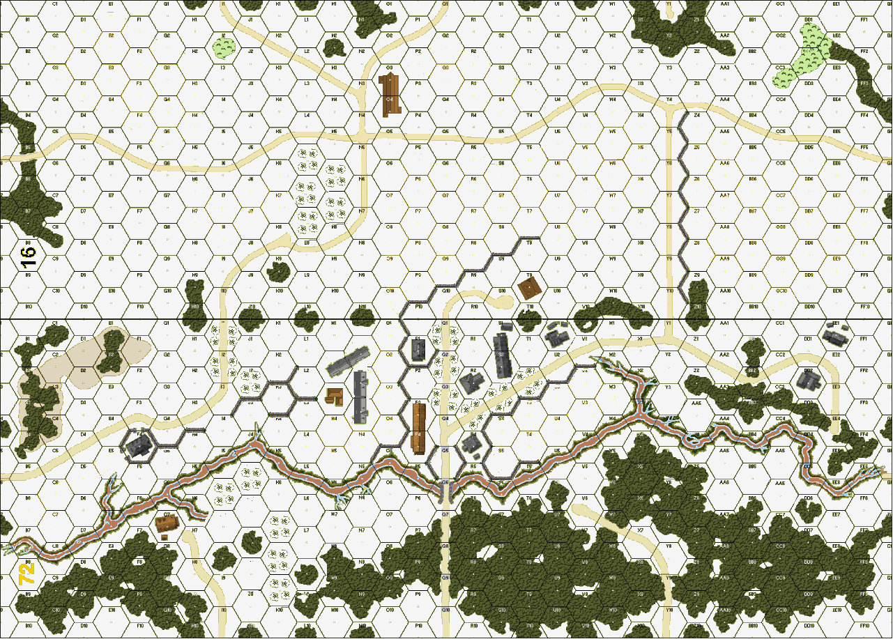 | Misc Rules: | GS (E3.72), Stream is dry (B20.41), All buildings are ground level, rowhouses do not exist. |