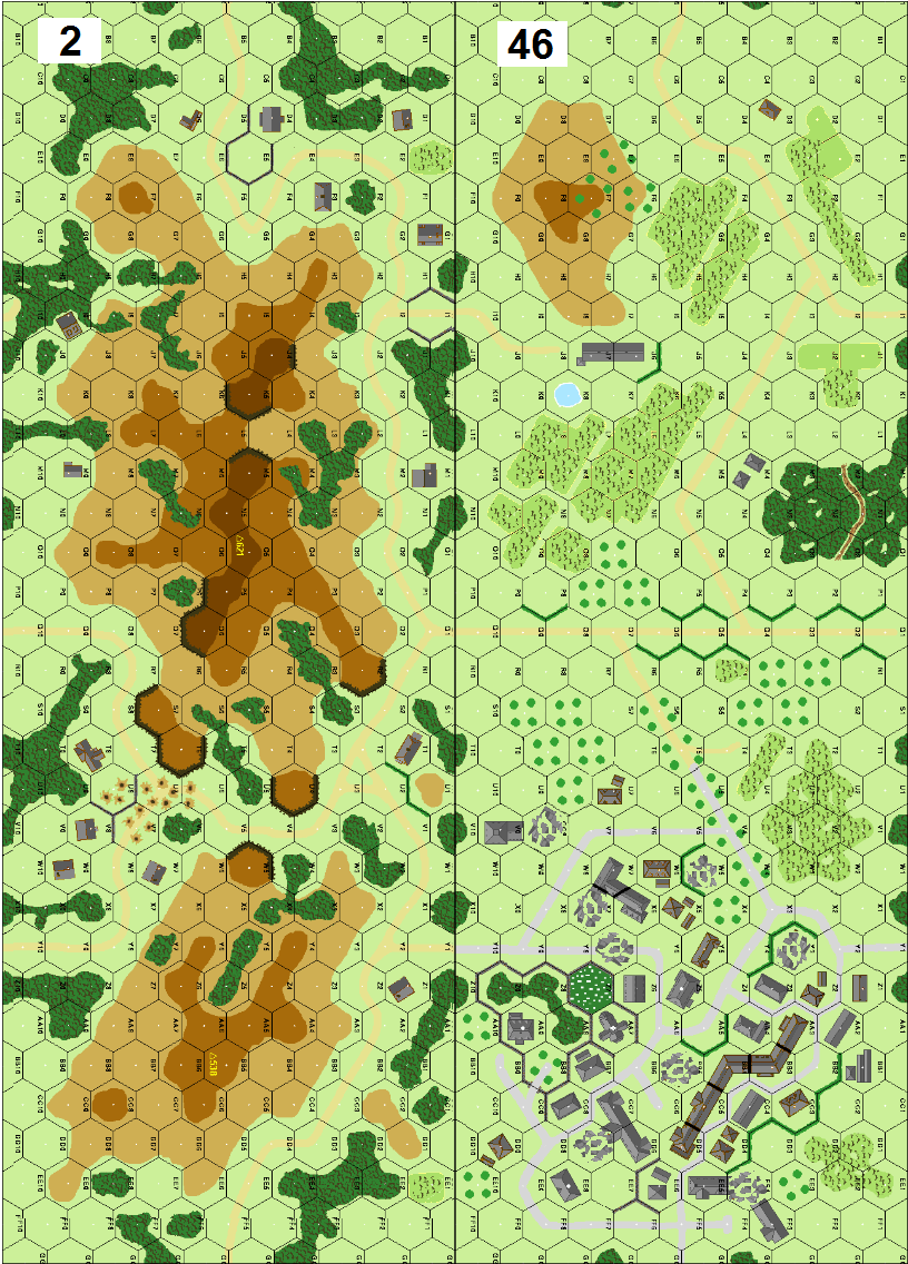 | Misc Rules: | Stone buildings, Grain is Brush. Olive Groves (B14.8). D: Reinforcement dr each turn |